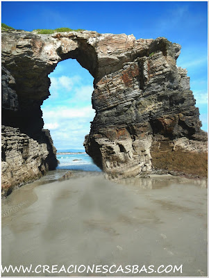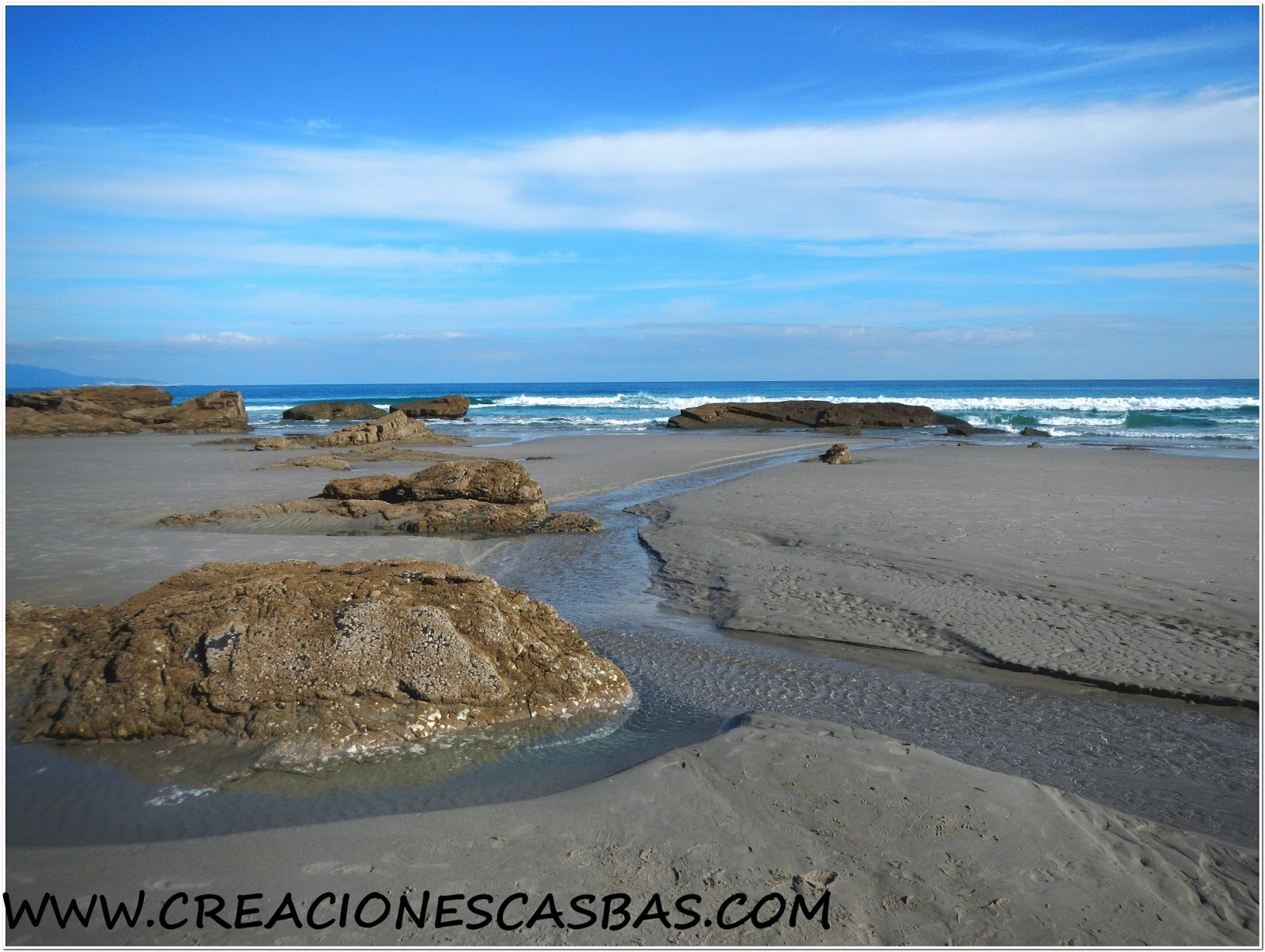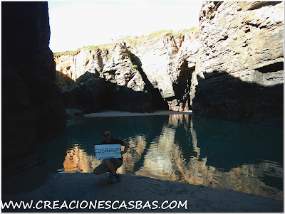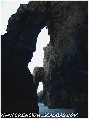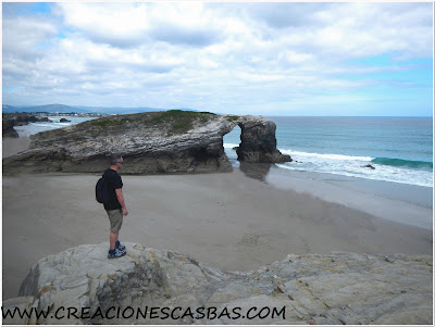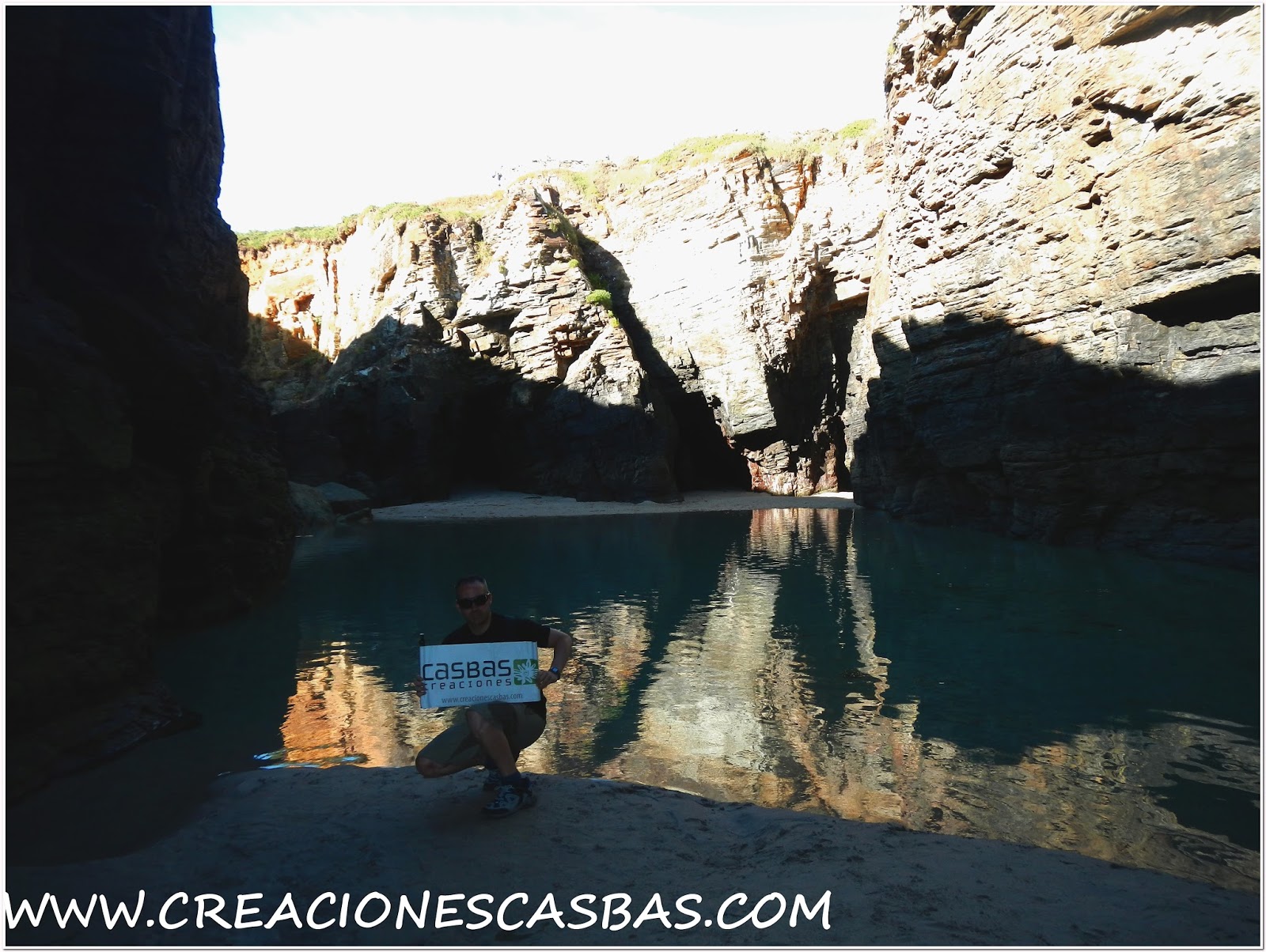 Seguimos por túneles uniendo unas cuevas con otras, alguna bóveda, vemos un gran pequeño lago, el primer y más famoso arco, y más y más arcos y cuevas… Todo rodeado de arena limpísima, mejillones y percebes.